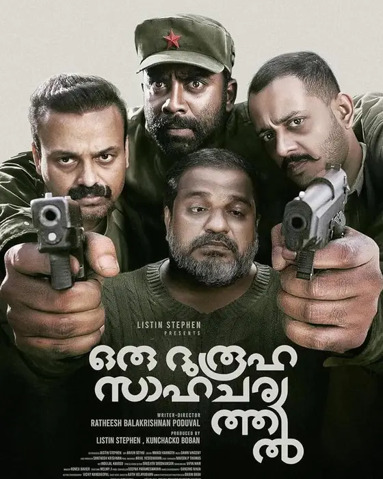 Oru Durooha Saahacharyathil★6.7/10 (3)2h 15min|Apr 15, 2026|Comedy, Thriller|13+|2DMollywoodSethu, a timid health center worker caring for his troubled brother, finds his quiet life disrupted when a stranger enters his home. What follows pulls him into a web of secrets, suspicion, and escalating tension.View more >